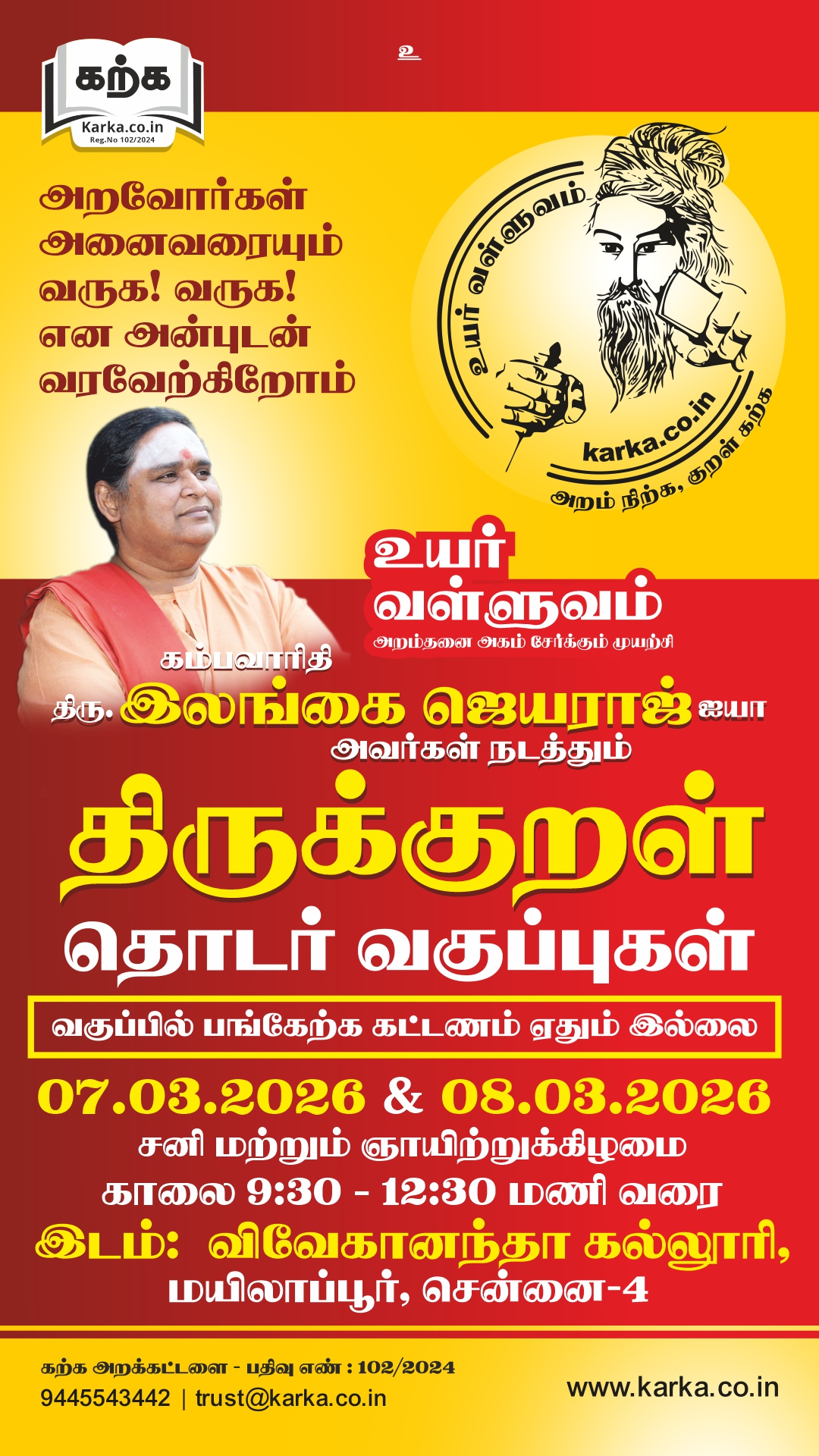 Tamil is a refined and rich compilation of knowledge over thousands of years of human living. Many literary works exude evergreen virtues important for mankind; the crown jewel of the stack is Thirukkural. Thiruvalluvar's Thirukkural has done an unmatched task of being comprehensive and at the same time being simple to grasp. "Uyar Valluvam" is our flagship project where we are trying to create a lifestyle based on Thirukkural, starting from teachers.